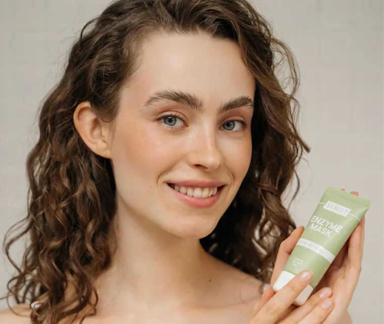 Белая глина и фруктовые ферменты мягко убирают загрязнения, сужают поры и придают коже свежесть
